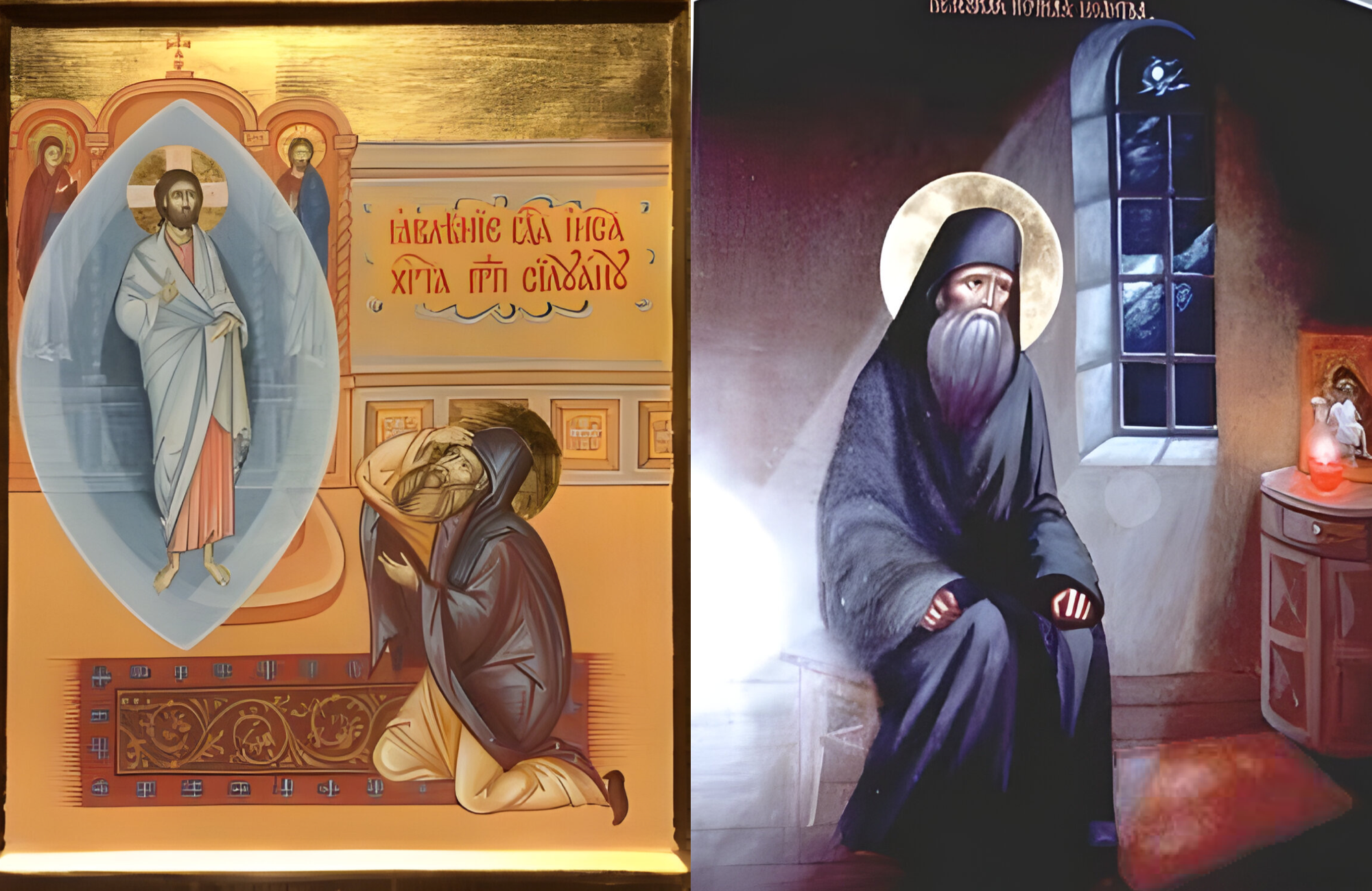 Saint Silouanwas a Monk from Mount Athos, shown here as an example of the common use ofprayer mats, rugs, and cushionsduring prayer amongst many Orthodox monks.